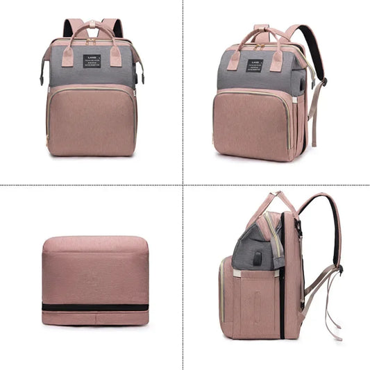 3'ü Bir Arada USB Özellikli Su Geçirmez Bebek Bezi Çantası Katlanabilir Sırt Çantası Bebek Yatağı
